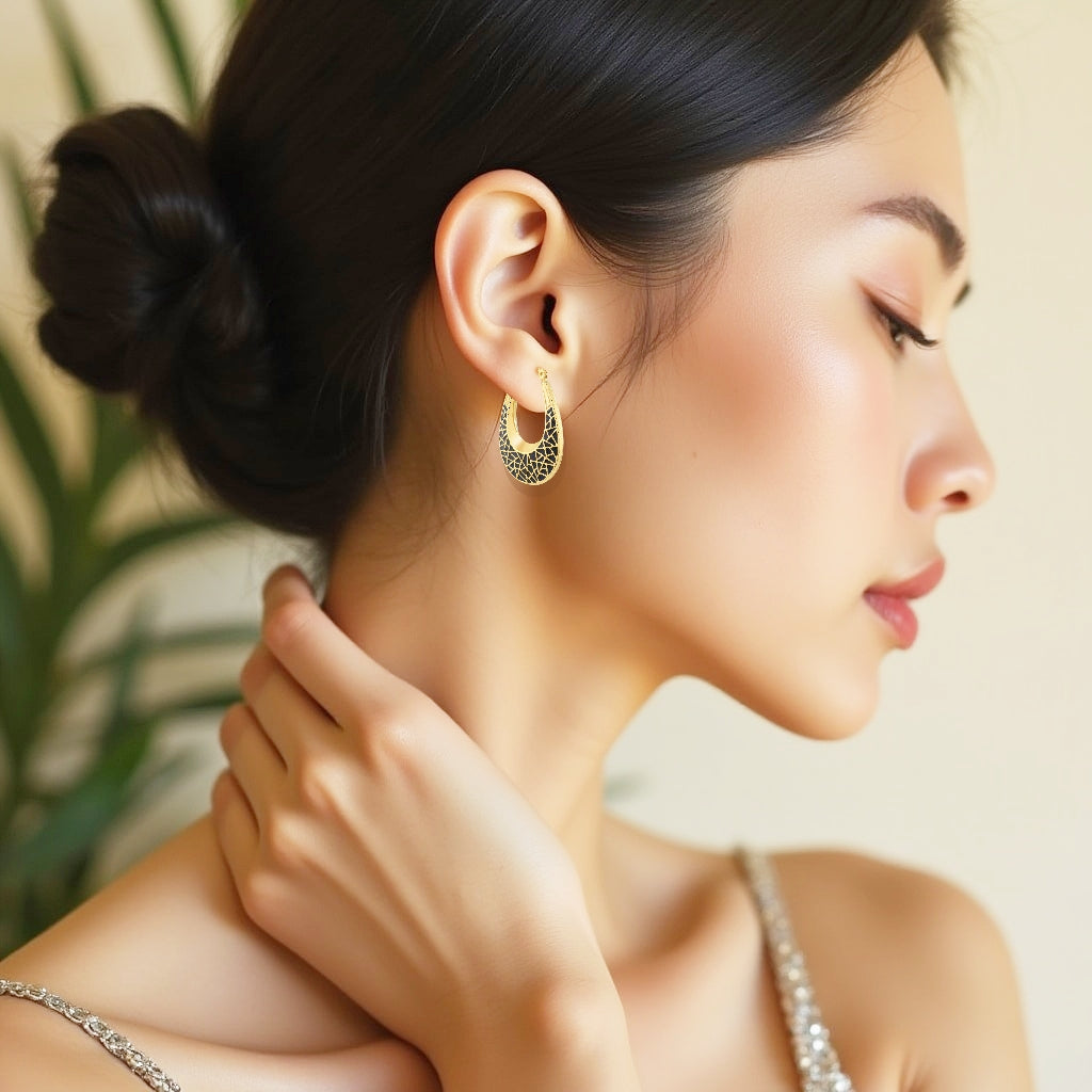 • 925 STERLING SILVER ENAMELED NET PEAR BACK TO BACK EARRINGS