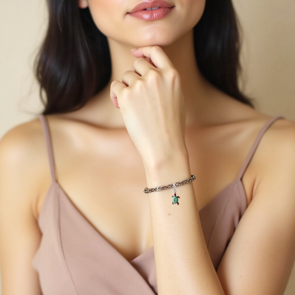• 925 STERLING SILVER ENAMEL LITTLE SEA TURTLE CHARM