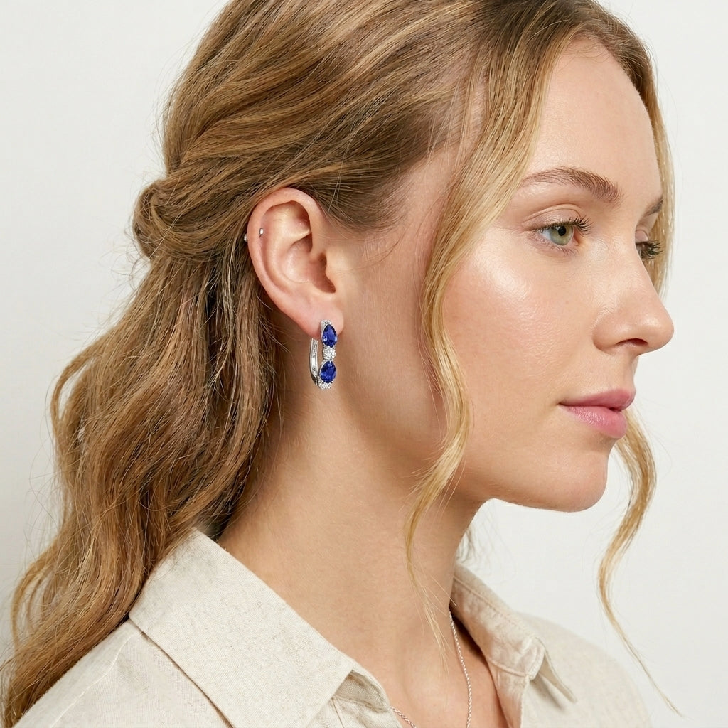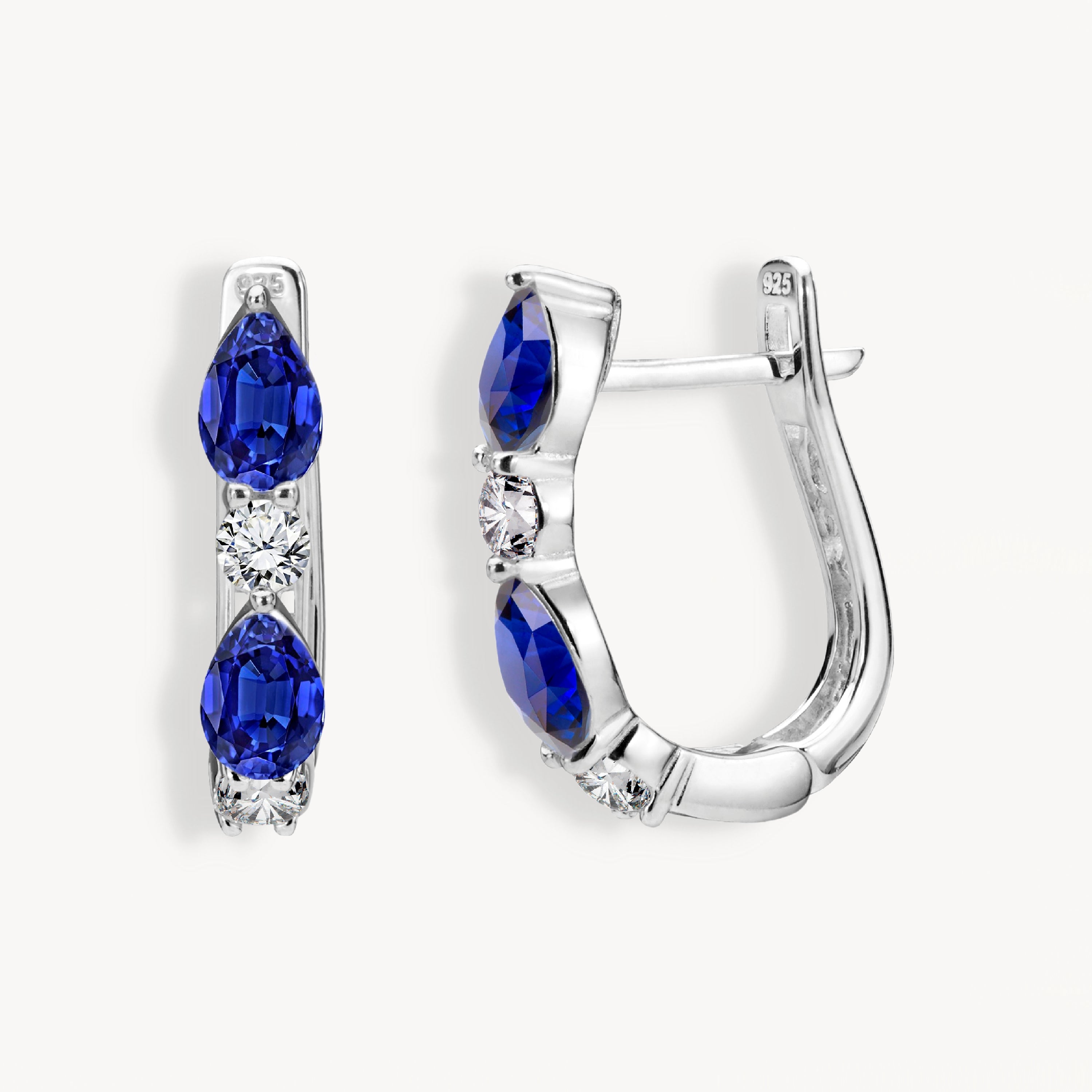 • 925 STERLING SILVER EARRINGS WITH CUBIC ZIRCONIA TANZANITE PEAR SHAPE