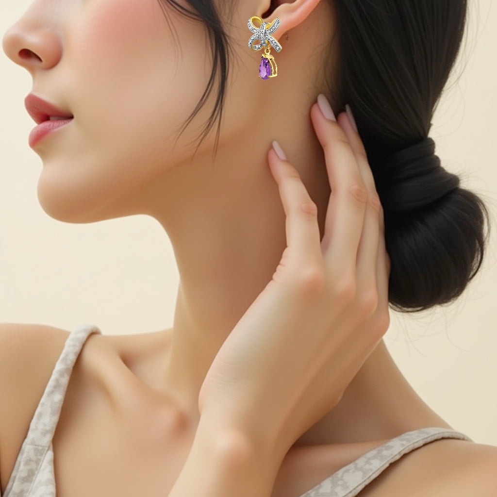 • 925 STERLING SILVER KNOT STUD EARRINGS WITH AMETHYST