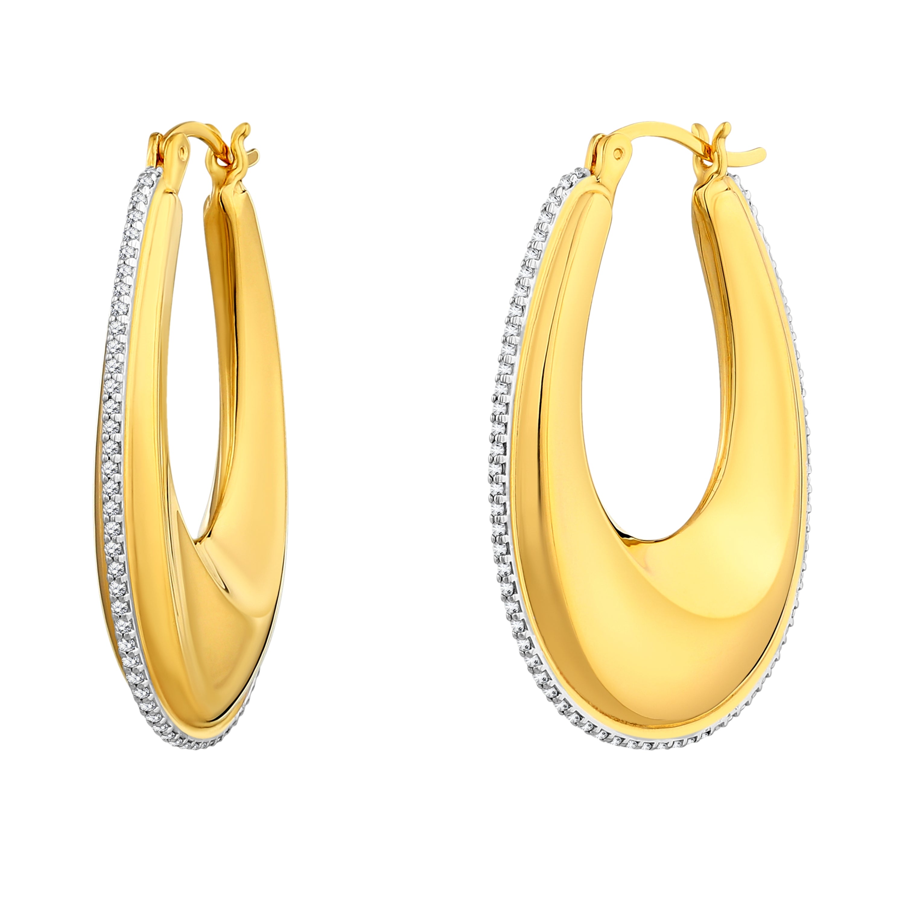 • 925 STERLING SILVER WITH 14K GOLD PLATED/CZ IDEAL CREOLE OVAL EARRINGS