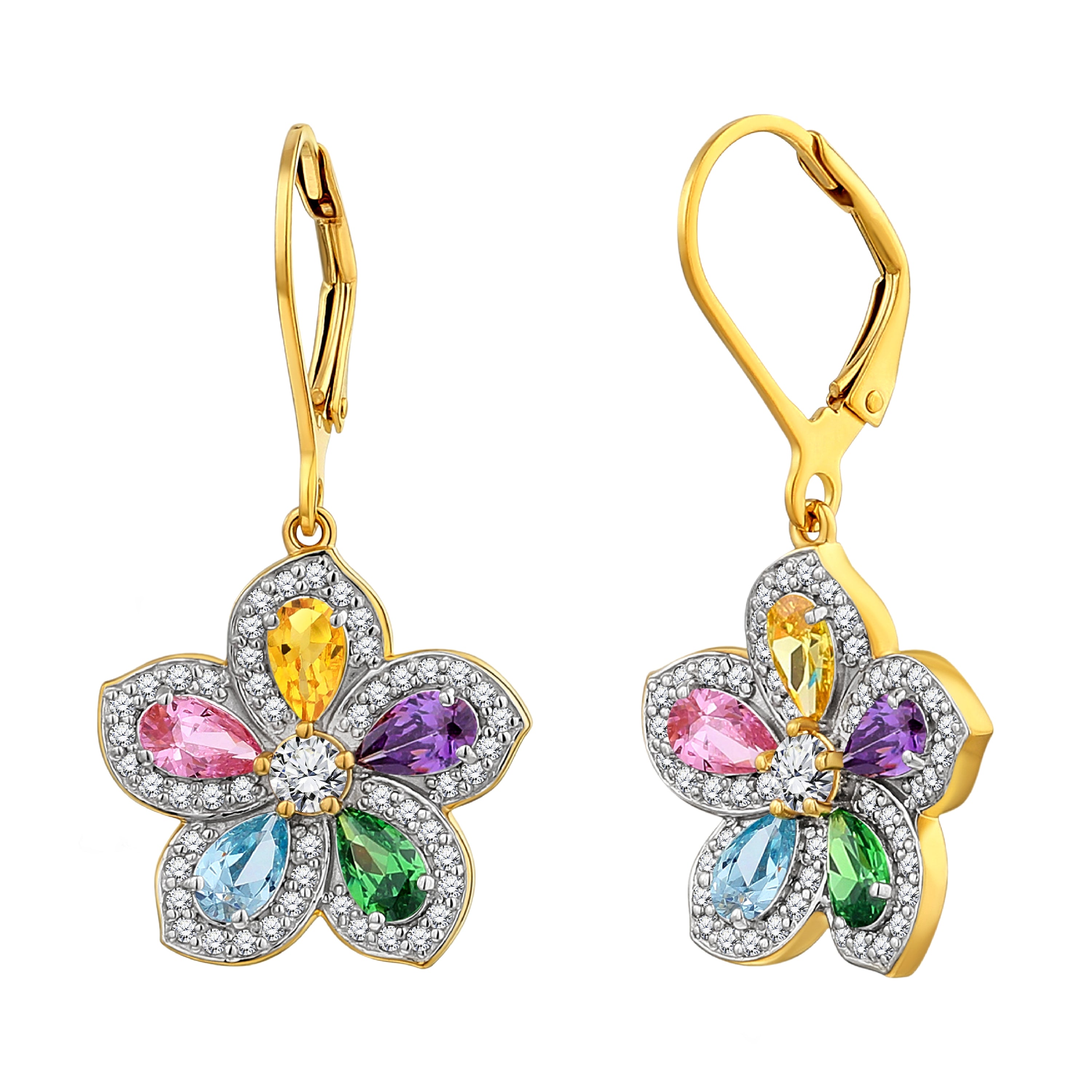 • 925 STERLING SILVER FLOWER MULTICOLORED EARRINGS