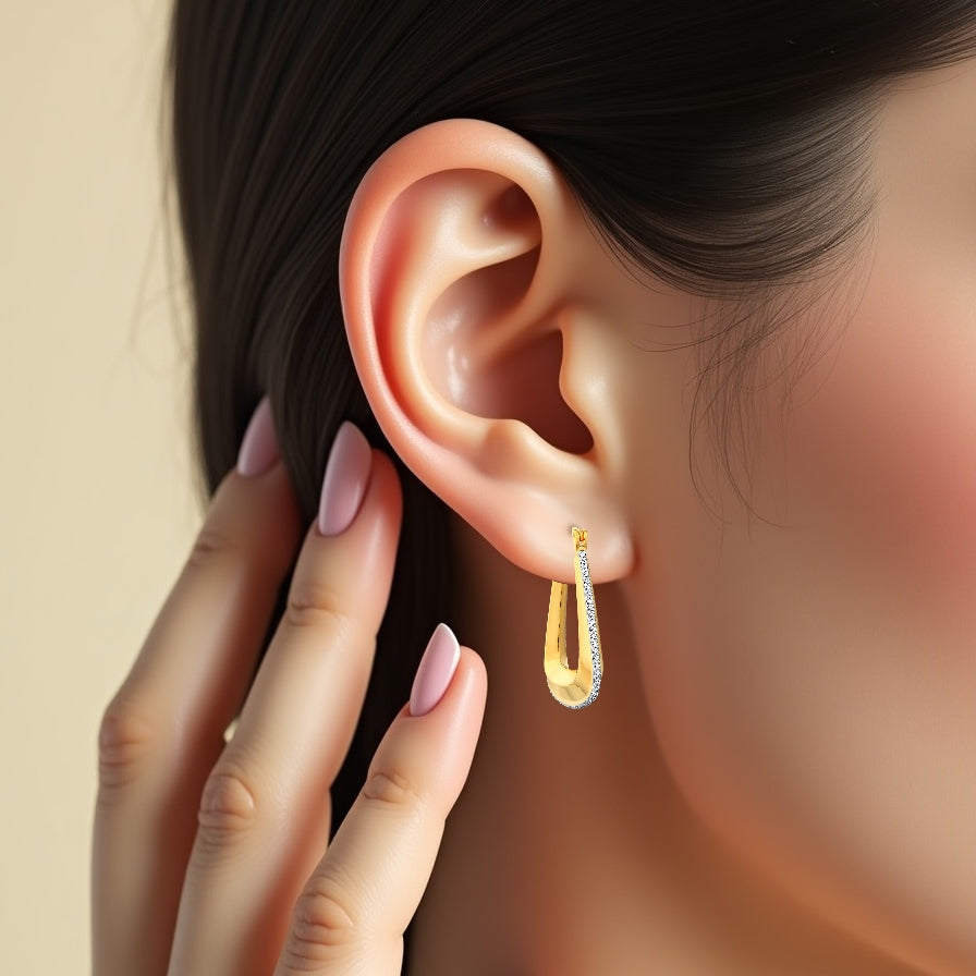 • 925 STERLING SILVER TRIANGULAR HOOP EARRINGS WITH CUBIC ZIRCONIA