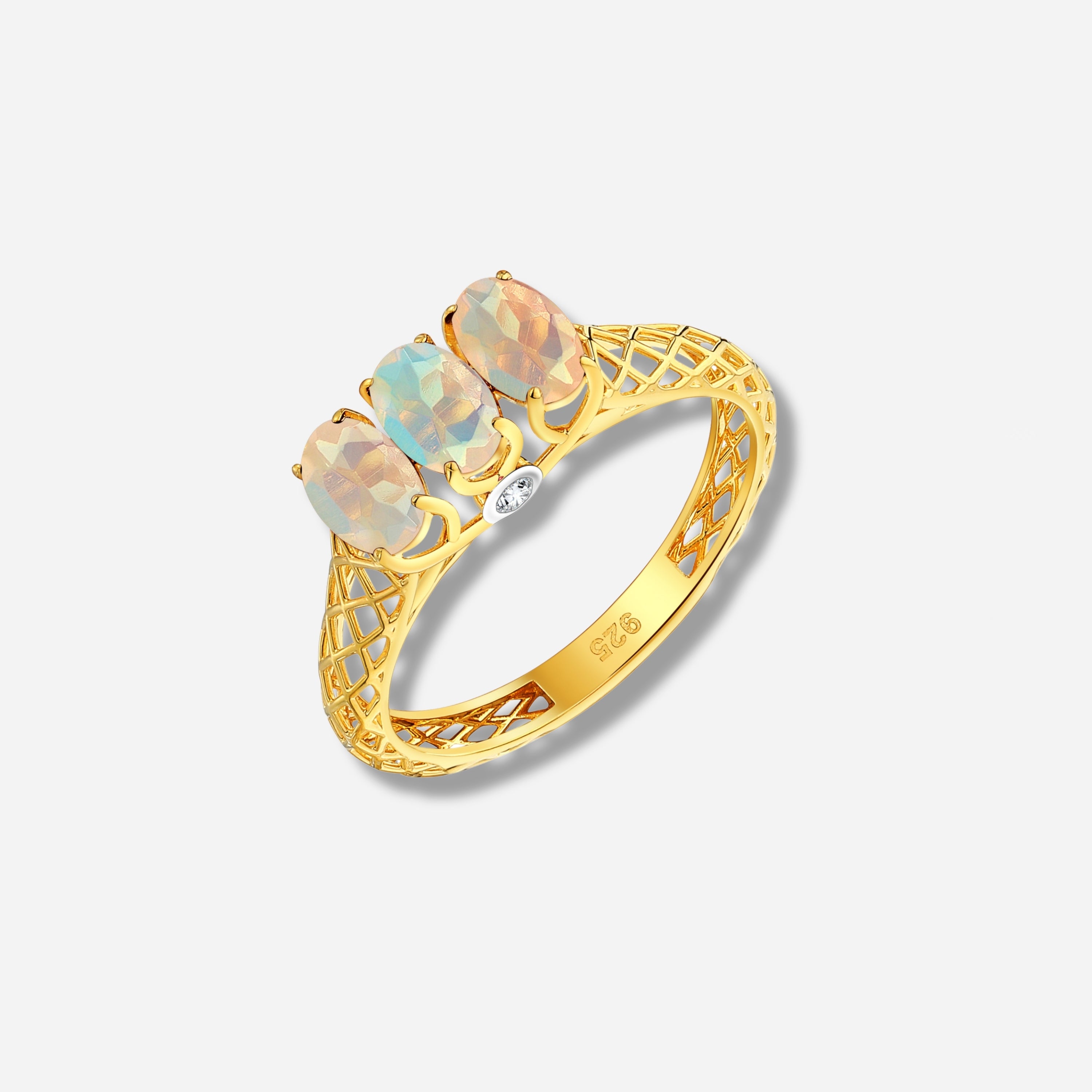 • 925 STERLING SILVER LE MESH RING WITH ETHIOPIAN OPAL