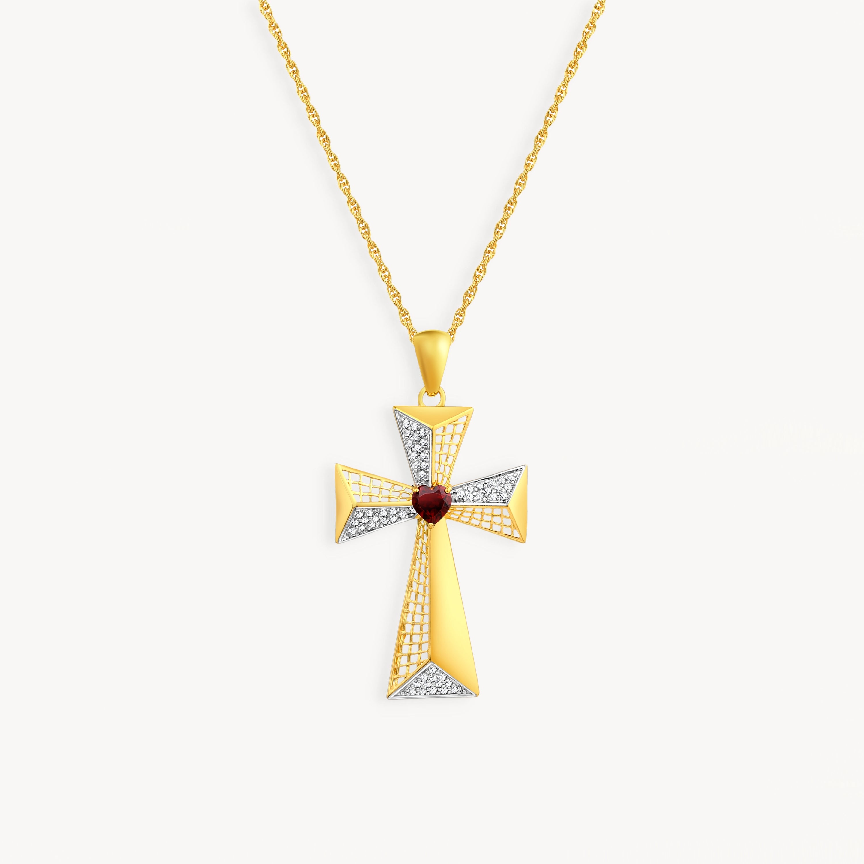 • 925 STERLING SILVER CROSS PENDANT WITH GARNET